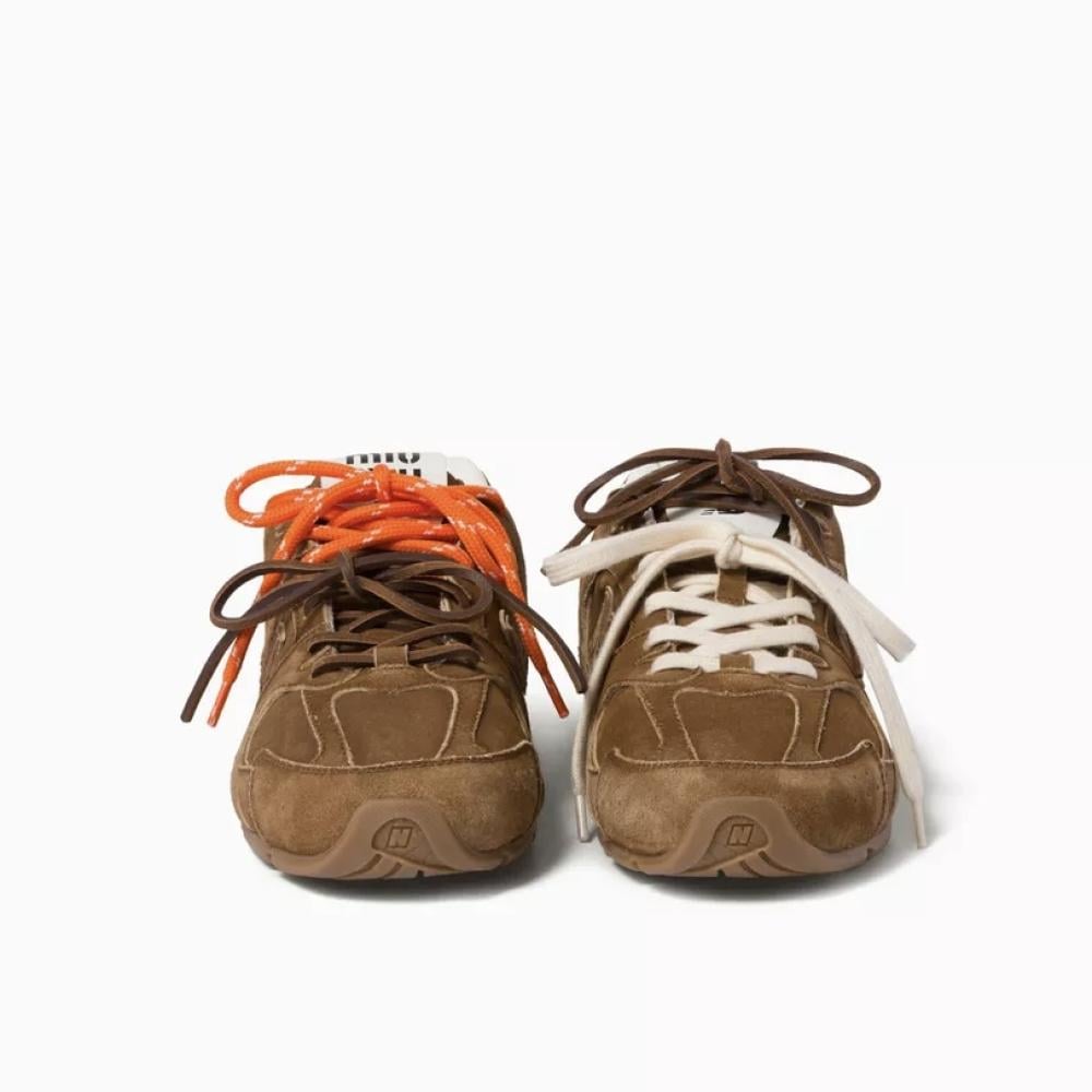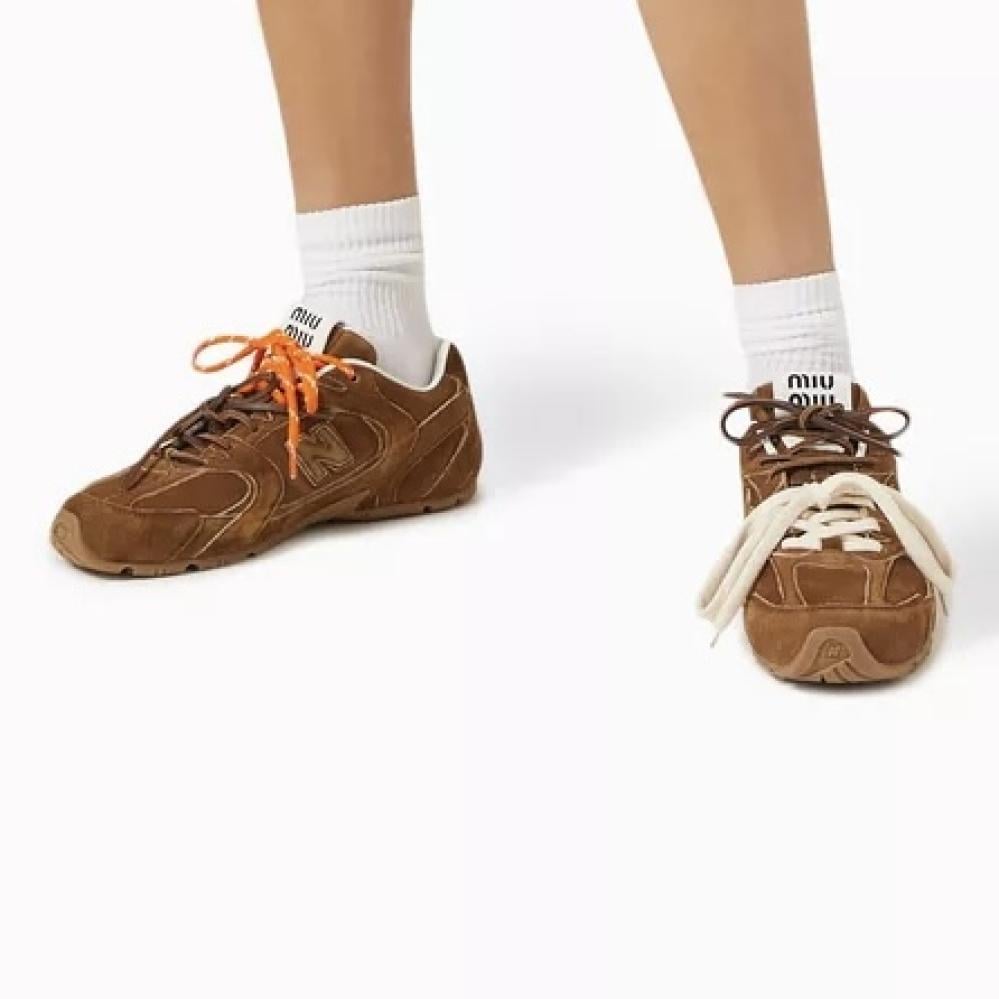 حذاء NEW BALANCE X Miu Miu xxx مصنوع من الجلد الشمواه والشبكة المسامية. يجمع هذا الحذاء بين جوهر الرياضة من نيو بالانس وروح الأزياء العالية من ميو ميو. يتميز بتصميم أنيق وتفاصيل دقيقة، مما يجعله مثاليًا للأشخاص الذين يبحثون عن الأناقة والراحة في آن واحد.