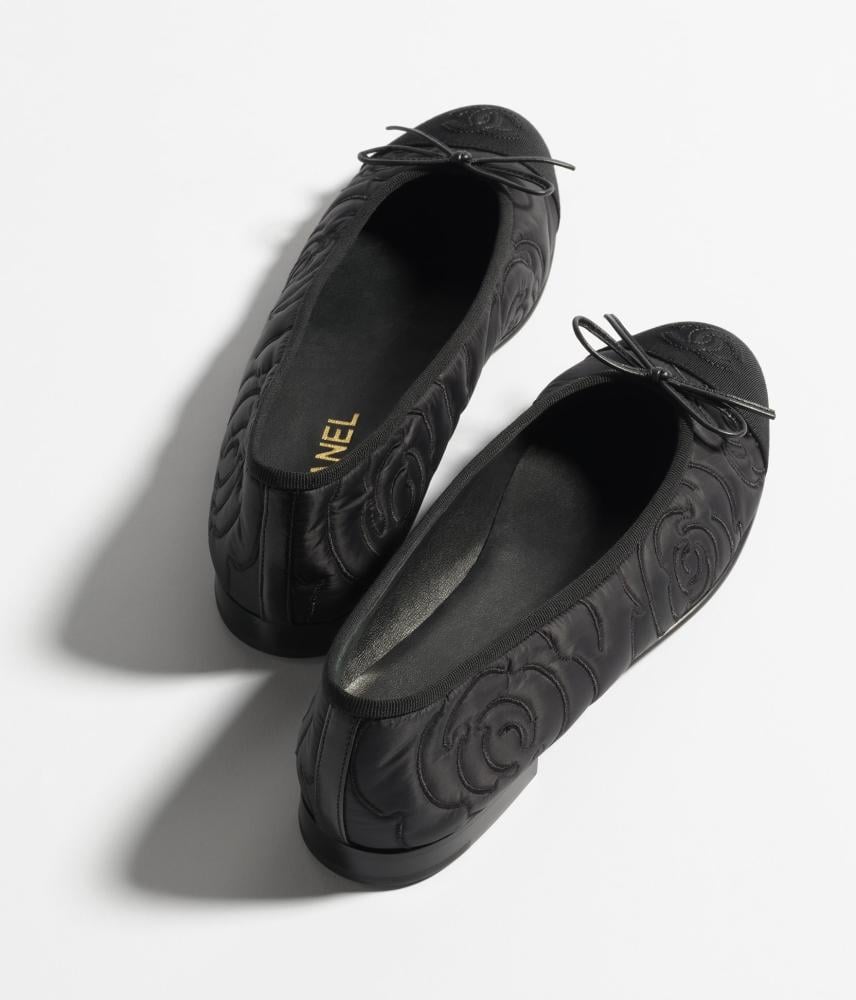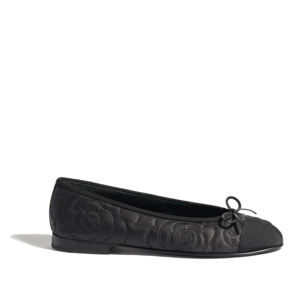 تصميم كلاسيكي بلمسة فخمة! باليرينا شانيل بلون كحلي وأسود تجي بجلد لامع فاخر يلفت، مع شعار CC الأيقوني بالخيط، أنثوية وأنيقة تناسب كل طلة
