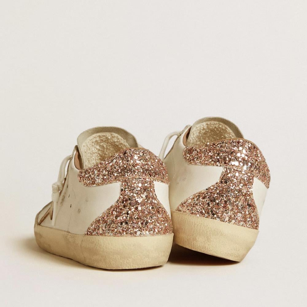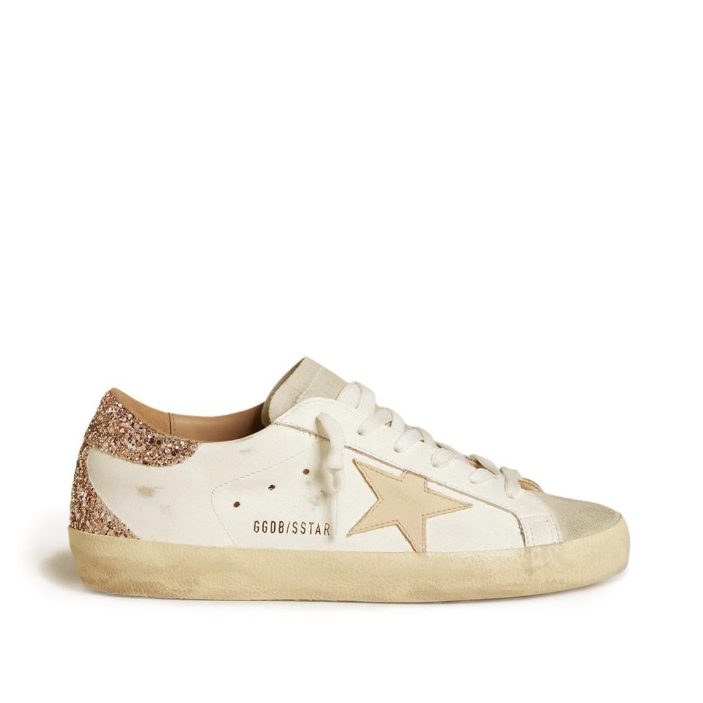Women's Super-Star with nude leather star and gold glitter heel tab