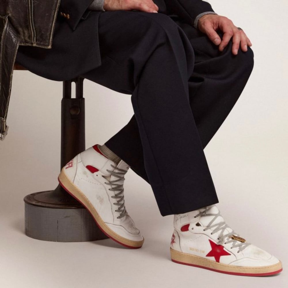 Golden Goose Sky-Star sneakers with signature on the ankle and red leather inserts