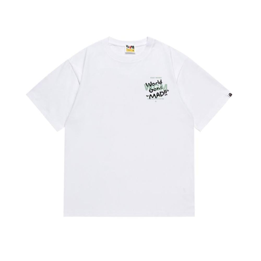تيشيرت بيب الأسود بكلمة “World Gone Mad!!” يعطيك إحساس بالعشوائية وستايل مجنون يحبه كل عشاق BAPE