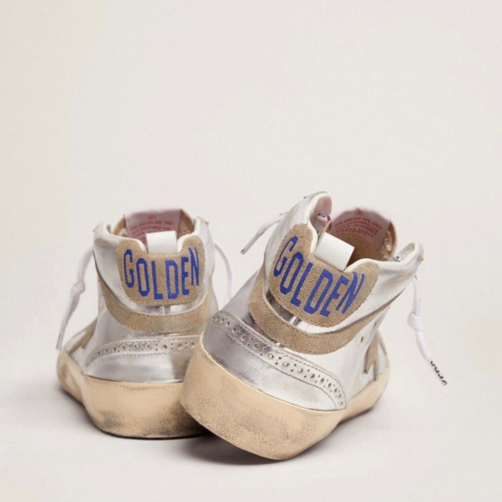 Mid Star sneakers in silver metallic leather with star and flash in dove-gray suede