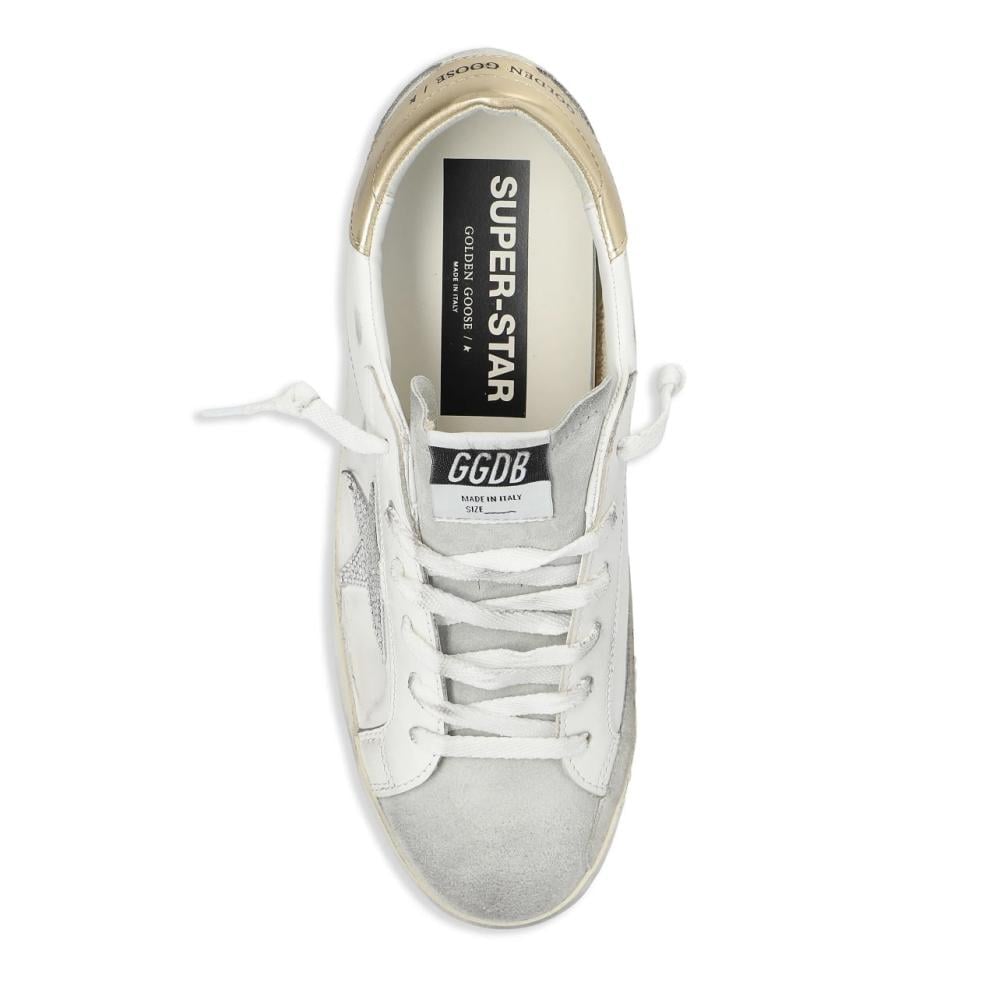 يتميز سنيكرز سوبر ستار من جولدن جوس بتصميمه الفريد المزين بتفاصيل باهتة تجعله يبدو كأحد القطع المستعملة المفضلة لديك. صنع السنيكرز في إيطاليا من الجلد الفاخر ويتميز بتصميم مريح مزين بثقوب ورقعة النجمة التي اشتهرت بها الماركة على الجانب.