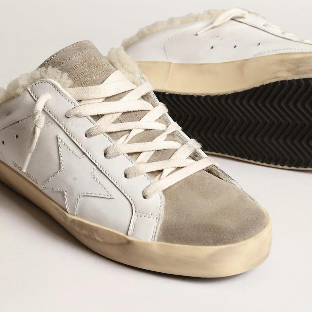 يتميز سنيكرز سوبر ستار من جولدن جوس بتصميمه الفريد المزين بتفاصيل باهتة تجعله يبدو كأحد القطع المستعملة المفضلة لديك. صنع السنيكرز في إيطاليا من الجلد الفاخر ويتميز بتصميم مريح مزين بثقوب ورقعة النجمة التي اشتهرت بها الماركة على الجانب.